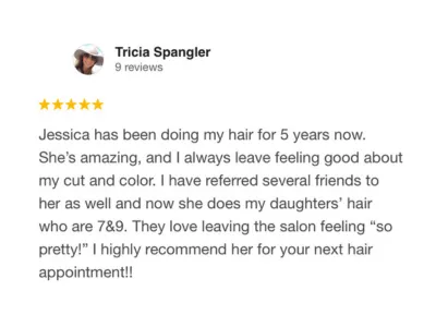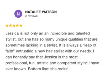 Hi, I’m Jessica Reid—owner and stylist behind Jes Reid Hair Studio. I’ve been a hairstylist for over 18 years and truly love helping my clients achieve hair that feels natural, effortless, and uniquely theirs.
